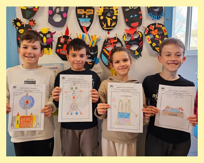 Rješavanjem nastavnih listića pokazali su svoje znanje, ali i maštu. Spremno su prionuli na posao kada si trebali nacrtali robote iz budućnosti koji se sastoje od 100 dužina i kružnica.