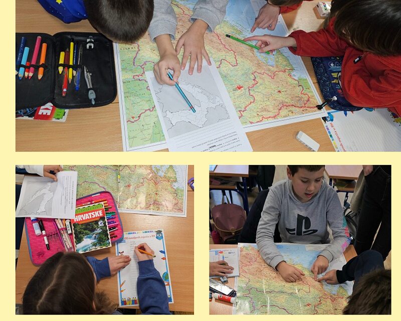 U skupinama su uspješno pronašli 100 naselja u Hrvatskoj na geografskoj karti prema zadanim kriterijima. Uredno su zapisali nazive te pri tome pazili na pravilo pisanja velikog početnog slova.