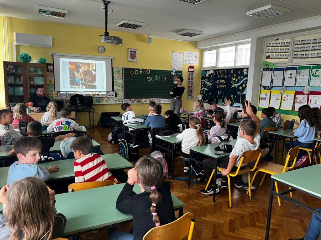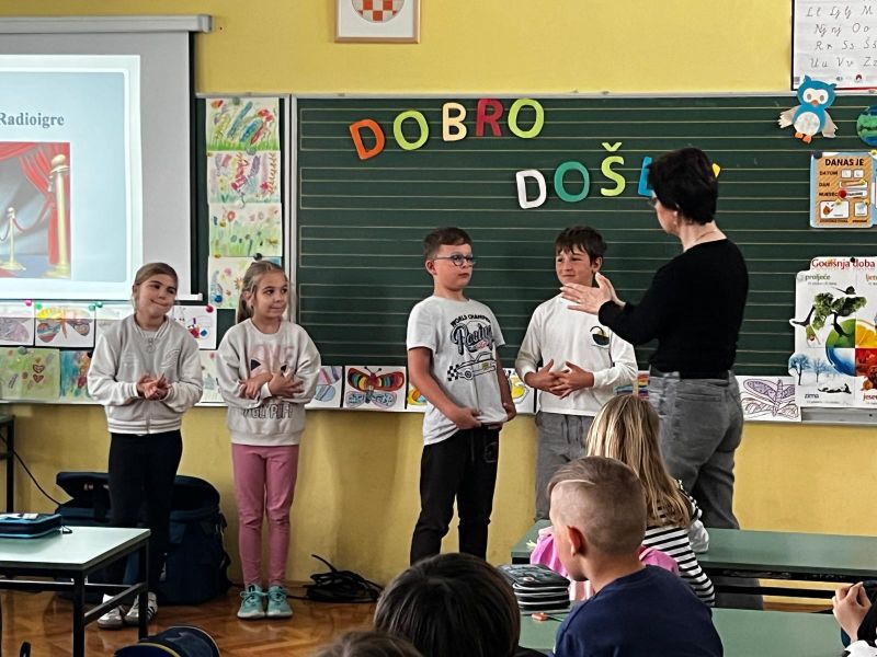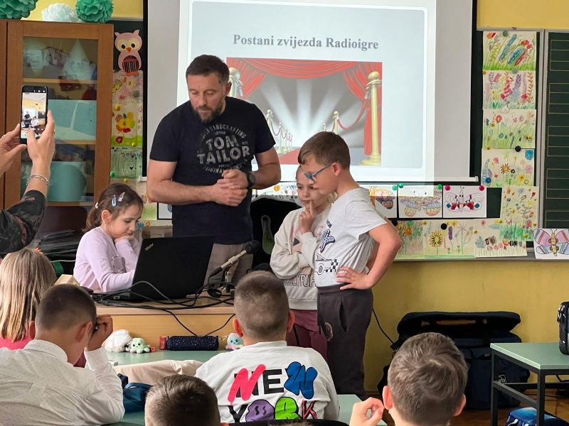 Radioaktivna slušaonica, umjetničko-edukativni program HRT-a, okupila je učenike 2.a, 2.b, 2.c i 4.b razreda, koji su imali jedinstvenu priliku zaviriti u svijet radijske dramaturgije. Radionicu su vodili urednica, dramaturginja i spisateljica Nives Madunić Barišić te ton majstor Tomislav Šamec, koji su sudionicima na zanimljiv i interaktivan način predstavili čaroliju radijske igre – od nastanka priče i pisanja dijaloga do snimanja zvuka i montaže.