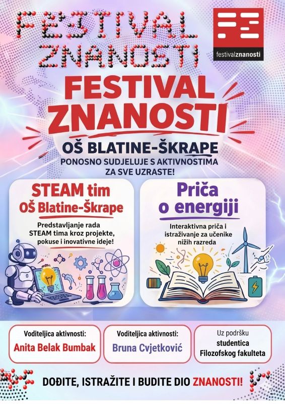 S velikim ponosom najavljujemo kako naša škola ove godine aktivno sudjeluje na Festivalu znanosti! Ovogodišnja krovna tema Festivala je Energija.