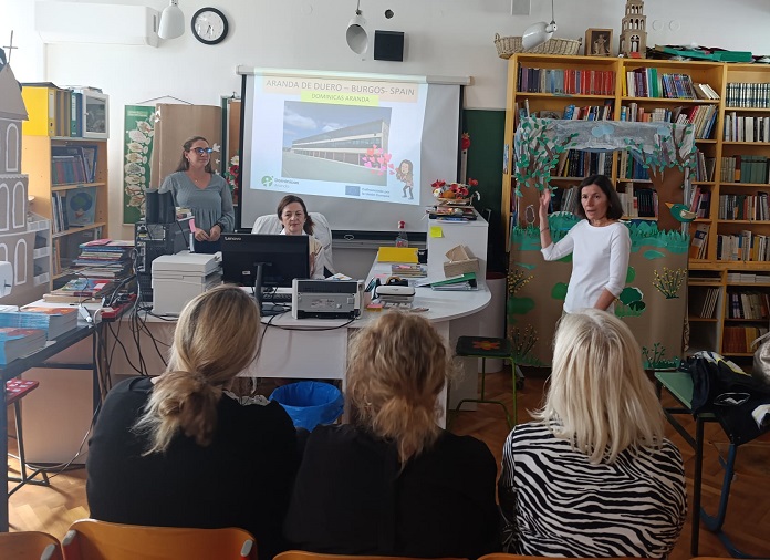 Jesensko druženje s europskim učiteljima zaključili smo posjetom tri nastavnice iz škole Colegio Dominicas Aranda iz grada Aranda de Duero u Španjolskoj. Nastavnicu Carmen smo upoznali prilikom naše job shadowing aktivnosti u gradu Espoo, a prijateljstvo se nastavilo kroz razredne projekte te kulminiralo dogovaranjem posjeta našoj školi. Iako nas vrijeme baš i nije mazilo, uspjeli smo im prirediti šarolik program.